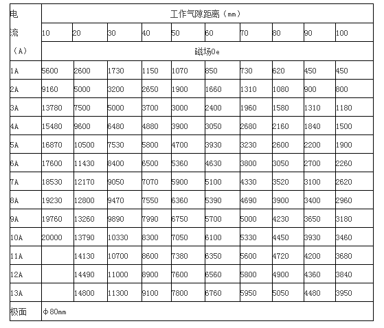 2.3 磁場(chǎng)強度: H≥0.5T,工作氣隙80mm時(shí)