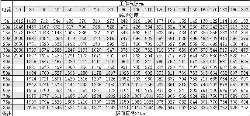 磁感應強度:11000 Oe(氣隙100mm時(shí))